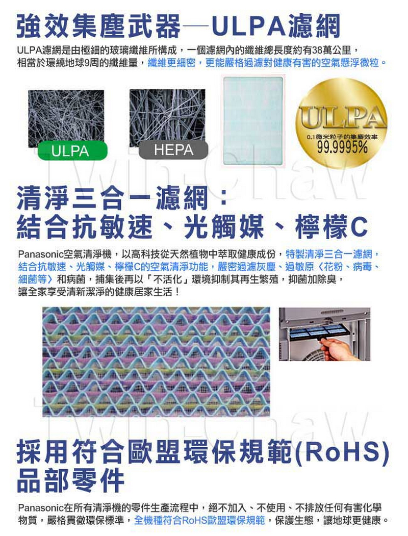 .ULPA+抗菌濾網,強效集塵