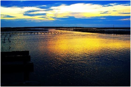 這是一個超過60年的虱目魚專業養殖場,佔地遼闊(100甲)。晨曦影約可見的山巒。夜鷺飽食一整晚,三三兩兩,踏上歸途,時而發出會心的一叫!日出時,塭提上東方環頸?的幼鳥橫衝直撞,母鳥忙著在後面數「人頭」,親情的力量,原本存在於自然的。