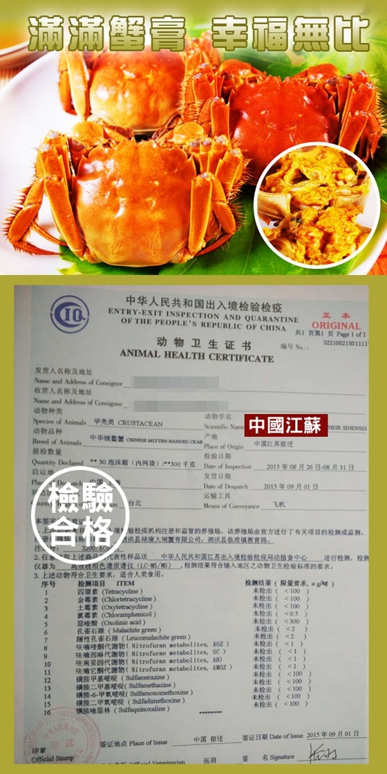 大閘蟹之霸,非提中國江南不可,特地下訂來台,讓饕客們思思念念的美味可以大快朵頤一番!